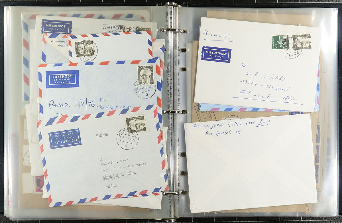 Rate study/accumulation of "President Heinemann" issue of 1970-1972 on covers, postcards and parcel cards, mostly sent to Canada. Because of the time period, the different sizes and weights of the envelopes and the different services used (e.g. first class, express, registered, airmail, etc.) there is a plethora of rate combinations here. A total of 128 items, with a bit of duplication, and a few which appear to have their original contents. A few have overlap with other definitive issues, but this makes for a strong basis for study after 50 years. Estimate =