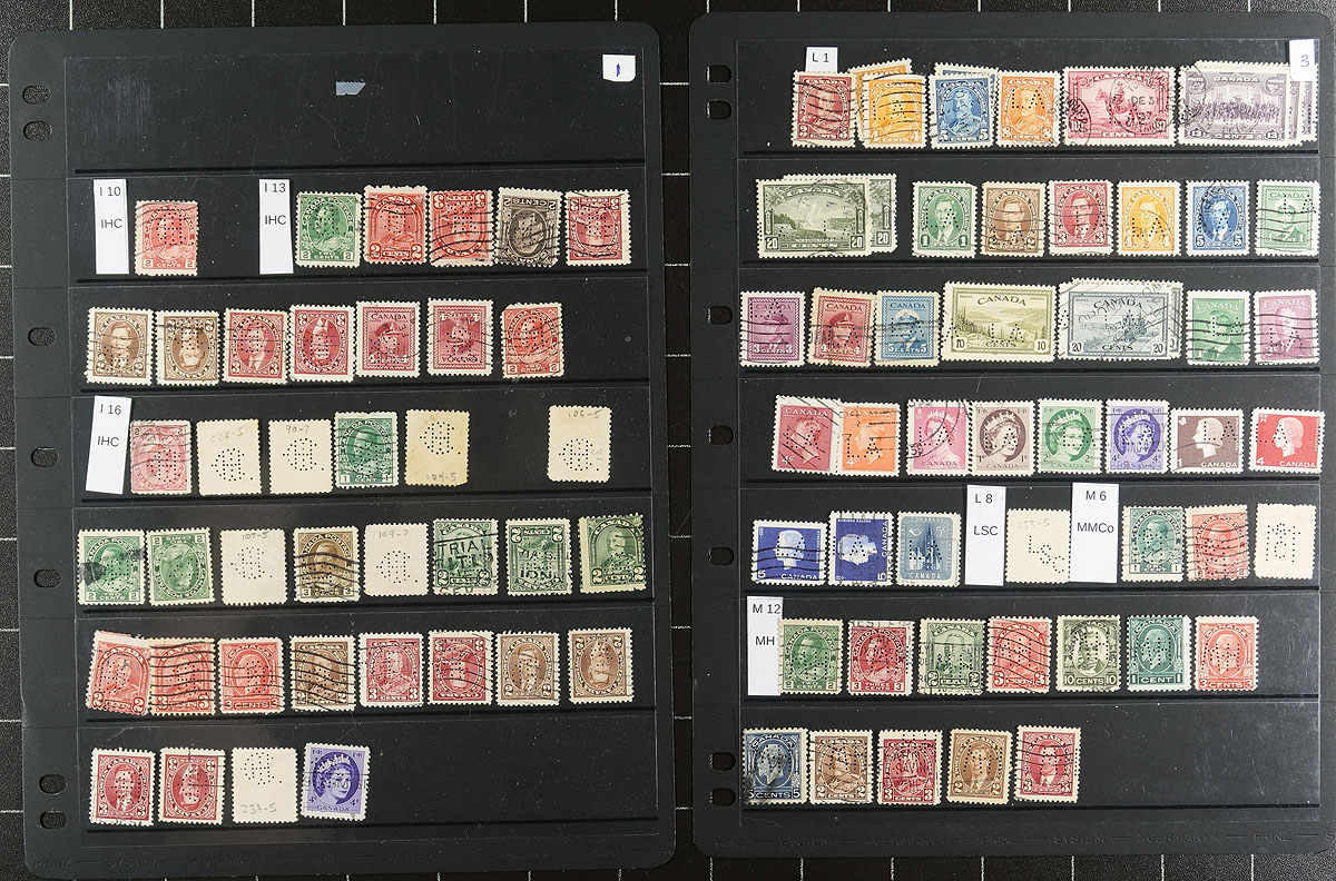 Collector's Holding Part 2. Insignia I10-W18 and Gutta Percha, selection of 592 stamps, of which 551 are different to either stamp or perfin position, from 54 different Insignia. All arranged on 12 pages and identified by The Perfin Handbook by the previous owner. Owner notes that the O9 and O10 catalogue $143.00 alone (2024 Unitrade) and that half of the Insignia are RF E and RF F (29). Combined with the previous lot, this would give someone a great entry into this collecting area, or fun for the seasoned perfin collector to compare against their own holdings. Estimate =