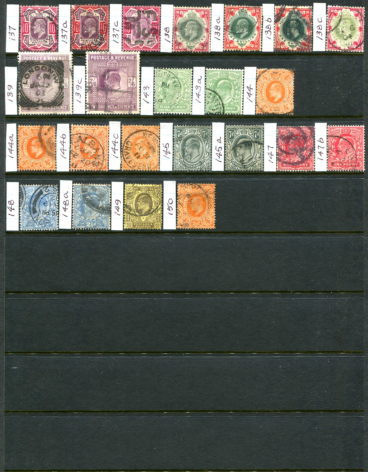 The Queen Victoria Jubilee Issue and the King Edward VII issues, from 1887 - 1911. Seventy-eight used stamps, including most major colour variations as catalogued in Stanley Gibbons (Victoria) and Scott but identified only by Scott catalogue numbers. Not quite complete, but close. Owner's 2023 Scott US$3,905.70 ($5272.70 CDN). Estimate =