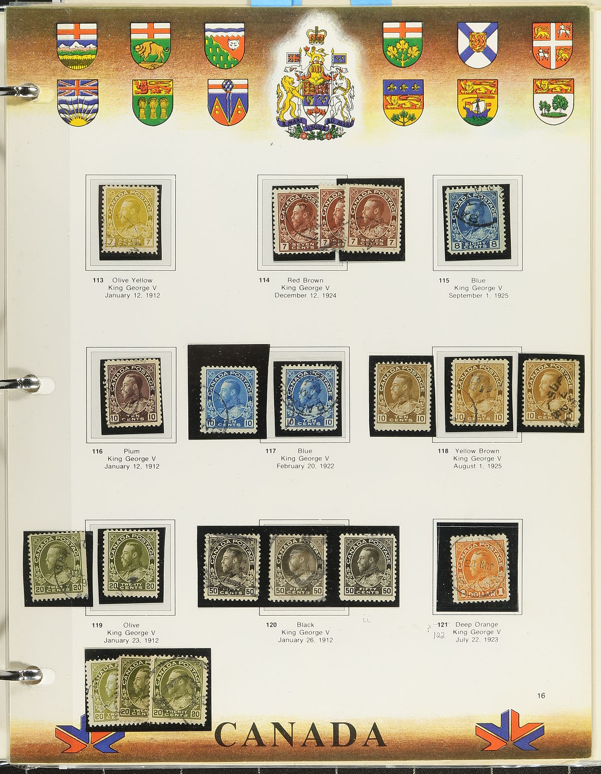 Desirable collection of used Canada, 1870's-1969, containing many hundreds of stamps some in hingeless mounts on several album or homemade pages. There is a lot to digest here beginning with roughly 20 Small Queens (including 50c Widow Weeds), complete sets of Leafs, Numerals, Quebecs (Scott c.v. $708), Admirals (noting an attempt to include various shades), Admiral coil singles and pairs including Scott #s 123-124 (x2, $260 total), 136-138 pairs ($175 total), Scrolls (noting 50c Bluenose and $1 Parliament with dated cds postmarks), Arch, Pictorials, Airmails, Postage Dues, and more. The collection also includes additional pages of owner's duplicates of complete or part sets of Leafs onwards (noting another 50c Bluenose, $1 Parliament, coil issues, and more). Postmark interest includes cds, split ring, squared circles, RPO, MOOD, and more, noting many stamps having lovely "socked on the nose town" cancels. A potentially high cataloguing lot that should be popular with collectors, with sample photos provided. Estimate =