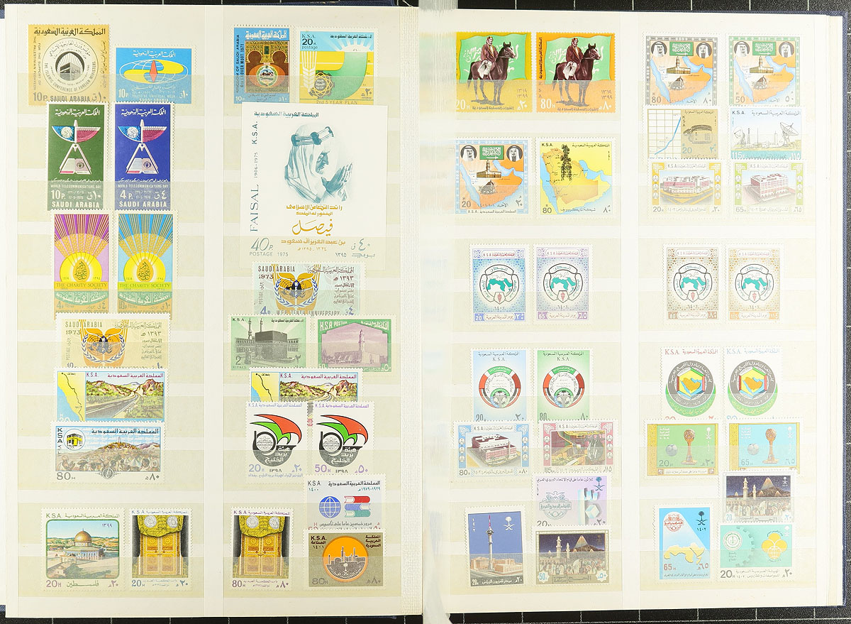 Lovely mint collection of Saudi Arabia, 1917-1994, containing roughly 350 stamps in a stockbook. The collection ranges from Scott #s L10/1186, containing singles and primarily sets including a good selection of airmail issues, with better representation from the 1930s to the 1970's. Just a few of the better items include L13 pair (mh, $65 total), 674 souvenir sheet (nh, $400), along with many singles and sets cataloguing $15-$25 and up each. A spot check indicated a mixture of mint hinged and never hinged material with all pages photographed online, ideal for collectors and dealers looking for stock. 2026 Scott US$2,402.00 =