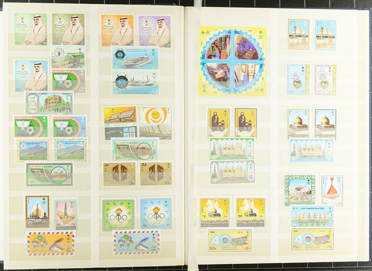 Lovely mint collection of Saudi Arabia, 1917-1994, containing roughly 350 stamps in a stockbook. The collection ranges from Scott #s L10/1186, containing singles and primarily sets including a good selection of airmail issues, with better representation from the 1930s to the 1970's. Just a few of the better items include L13 pair (mh, $65 total), 674 souvenir sheet (nh, $400), along with many singles and sets cataloguing $15-$25 and up each. A spot check indicated a mixture of mint hinged and never hinged material with all pages photographed online, ideal for collectors and dealers looking for stock. 2026 Scott US$2,402.00 =