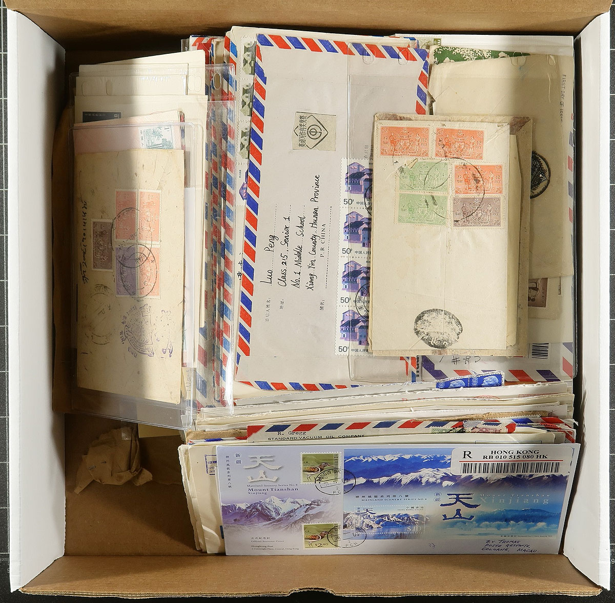 Group of roughly 250 Asia covers, generally ranging from the 1960's to the 1990's, noting a variety of material. We note better representation from China (including PRC), Japan, and Hong Kong, along with Korea and Nepal, including post cards, parcels, first day covers, commercial mail, meter mail, and more. A few faults with a few of the covers, as is the nature of commercial mail, still a nice lot for the postal history collector. Estimate =