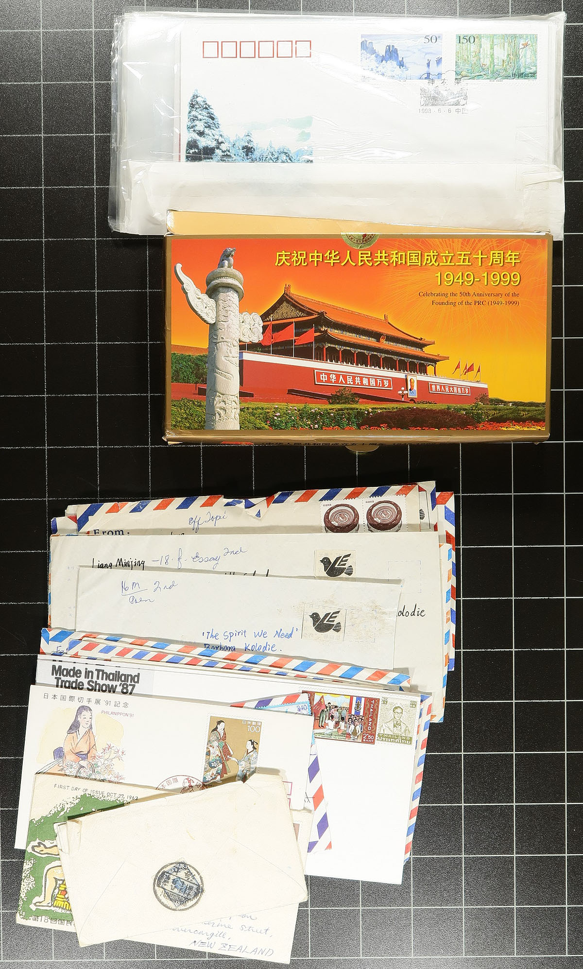 Group of roughly 250 Asia covers, generally ranging from the 1960's to the 1990's, noting a variety of material. We note better representation from China (including PRC), Japan, and Hong Kong, along with Korea and Nepal, including post cards, parcels, first day covers, commercial mail, meter mail, and more. A few faults with a few of the covers, as is the nature of commercial mail, still a nice lot for the postal history collector. Estimate =