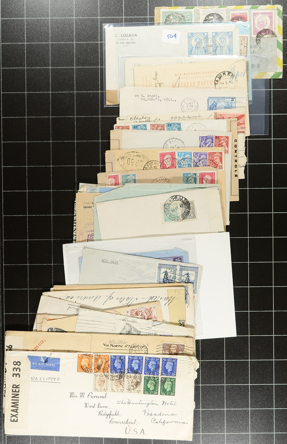 Group of roughly 90 military censor covers, almost all from WWII with better representation from Europe (namely Spain), along with Cuba and South American countries. We note a good variety of censor tapes (including civil censorship), and handstamps. Some of the covers have been sleeved and priced from $10 to $25 each. A nice lot for the military specialist. Estimate =
