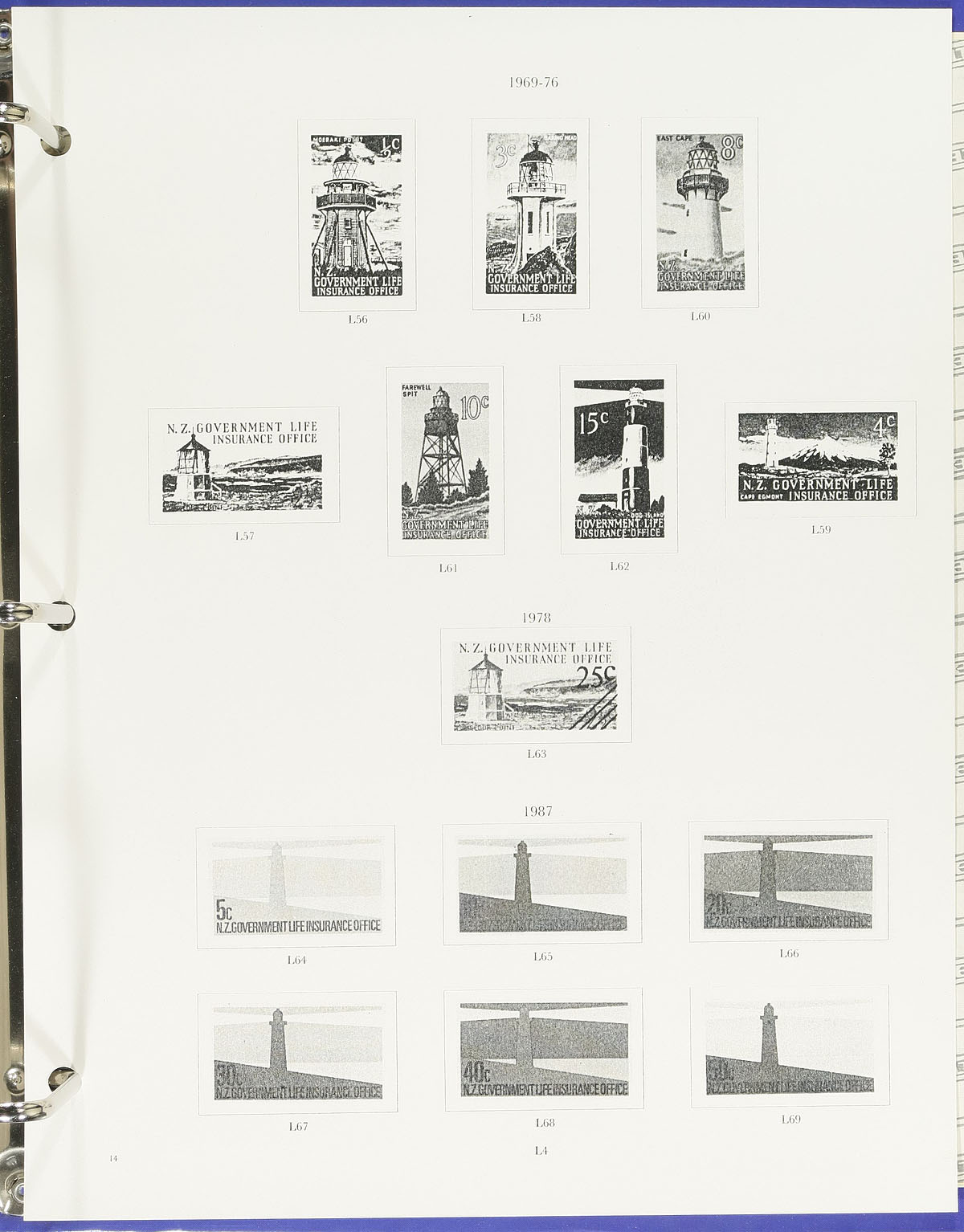 Useful Stanley Gibbons album pages for New Zealand covering year 1855-1999, in two binders. Includes spaces or strips and souvenir sheets, along with Health stamps, officials, fiscals, and more. Appearing to be brand new pages and a nice lot to organize or begin a New Zealand collection. Estimate =