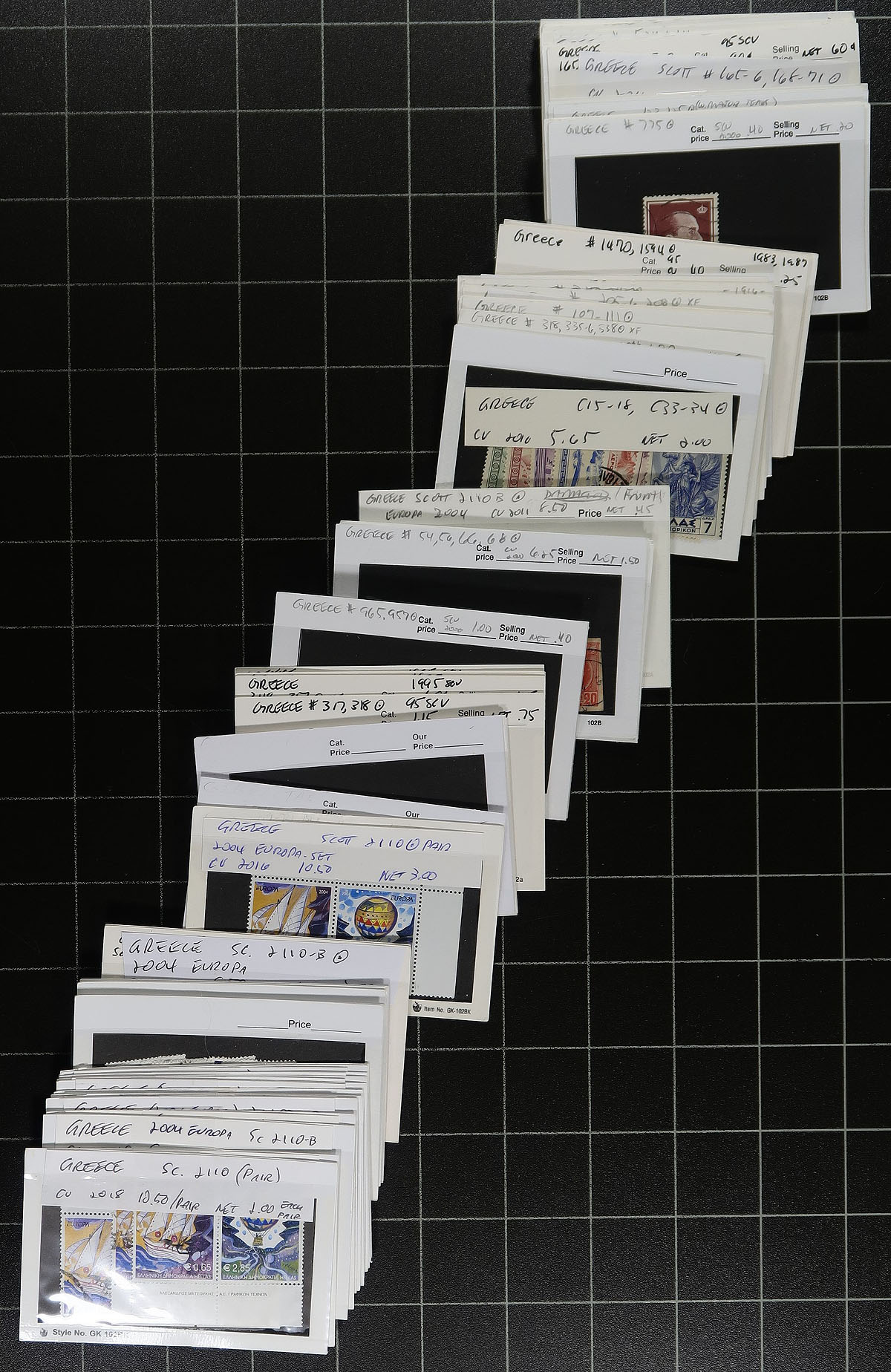 Two shoeboxes with a collector’s semi-organized mint and used duplicates, most in envelopes (many are in #102 cards, most are off paper, some are loose). Includes "back of the book" and most is 20th century material, all very clean with few faults to be expected and only moderate duplication in places. Lots of material in the $2.00-$20.00 catalogue value range, but there could easily be better material hiding here. A few thousand stamps in total. Perfect for collector or dealer. Estimate =