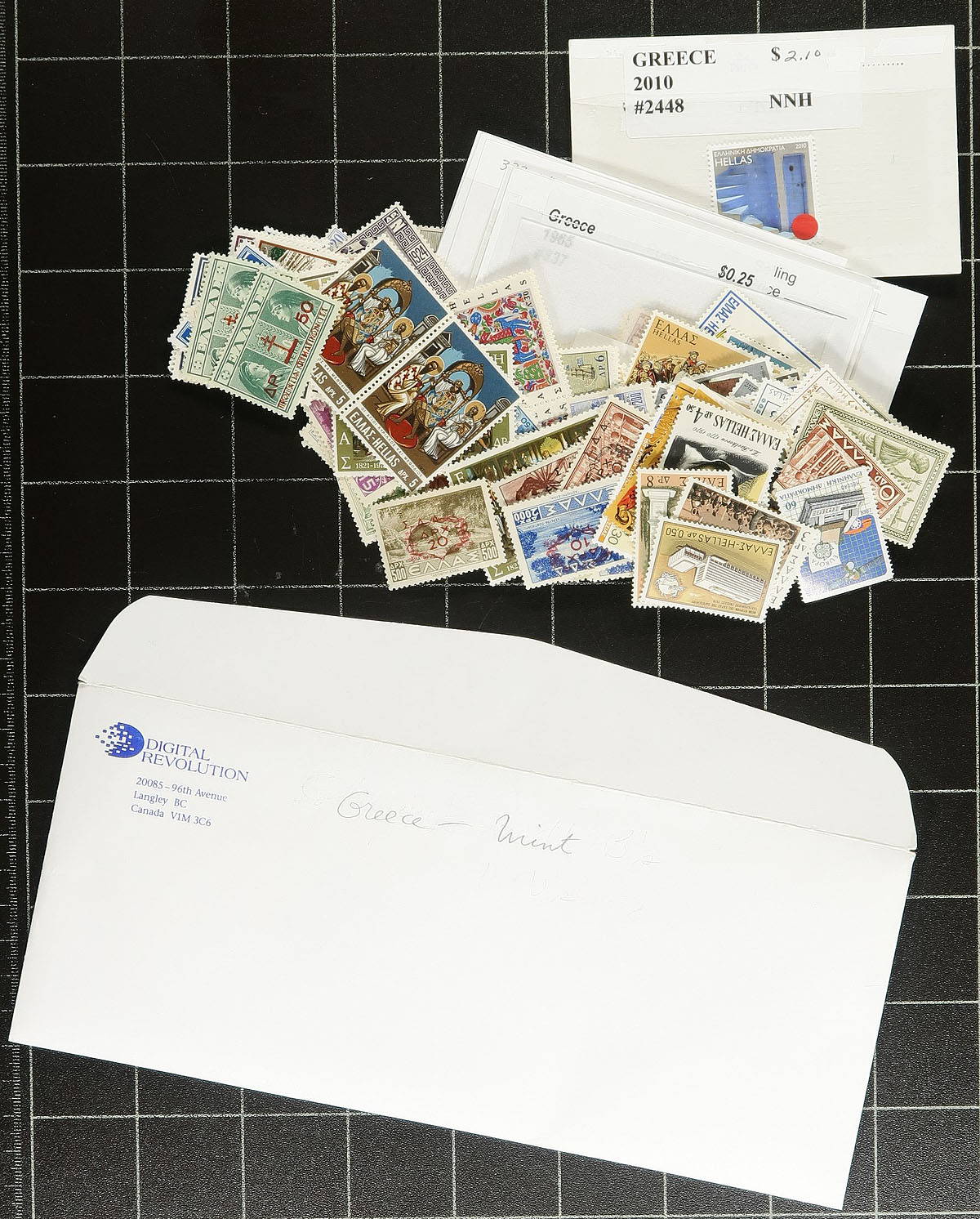 Two shoeboxes with a collector’s semi-organized mint and used duplicates, most in envelopes (many are in #102 cards, most are off paper, some are loose). Includes "back of the book" and most is 20th century material, all very clean with few faults to be expected and only moderate duplication in places. Lots of material in the $2.00-$20.00 catalogue value range, but there could easily be better material hiding here. A few thousand stamps in total. Perfect for collector or dealer. Estimate =