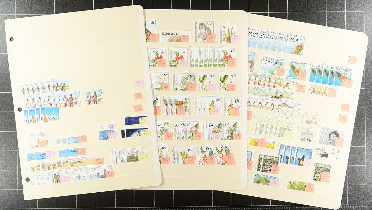 Queen Elizabeth II-era mint and used stock on 35 manila stockpages, with up to a dozen of a type. Better items throughout, such as #246 (seven mint), #343 (4 each mint and used), #409b-#411b (3 each mint), birds #395-511, etc. Very clean, well-organized, each item listed with Scott catalogue value and 2015 catalogue values (can be quickly updated). Some nice cancels amongst the used. Very few faults to be expected. Estimate =