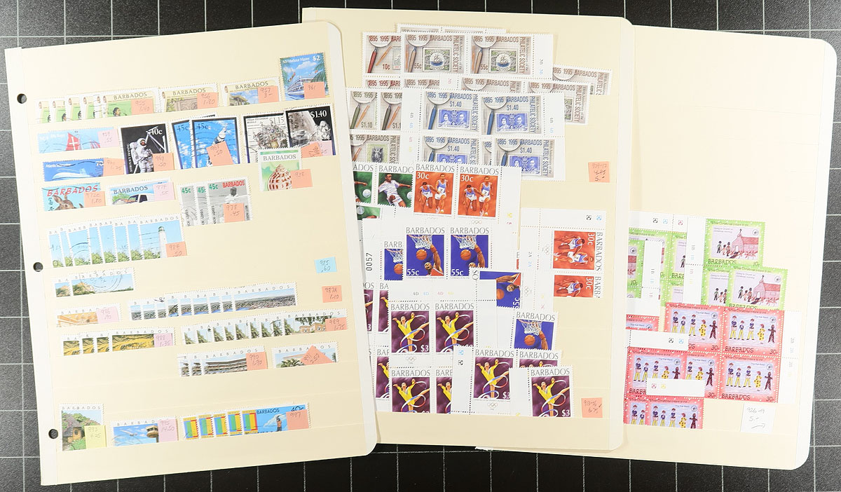 Queen Elizabeth II-era mint and used stock on 35 manila stockpages, with up to a dozen of a type. Better items throughout, such as #246 (seven mint), #343 (4 each mint and used), #409b-#411b (3 each mint), birds #395-511, etc. Very clean, well-organized, each item listed with Scott catalogue value and 2015 catalogue values (can be quickly updated). Some nice cancels amongst the used. Very few faults to be expected. Estimate =