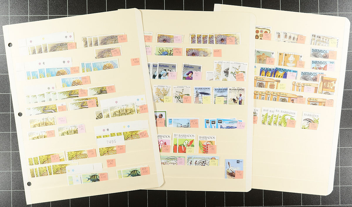 Queen Elizabeth II-era mint and used stock on 35 manila stockpages, with up to a dozen of a type. Better items throughout, such as #246 (seven mint), #343 (4 each mint and used), #409b-#411b (3 each mint), birds #395-511, etc. Very clean, well-organized, each item listed with Scott catalogue value and 2015 catalogue values (can be quickly updated). Some nice cancels amongst the used. Very few faults to be expected. Estimate =