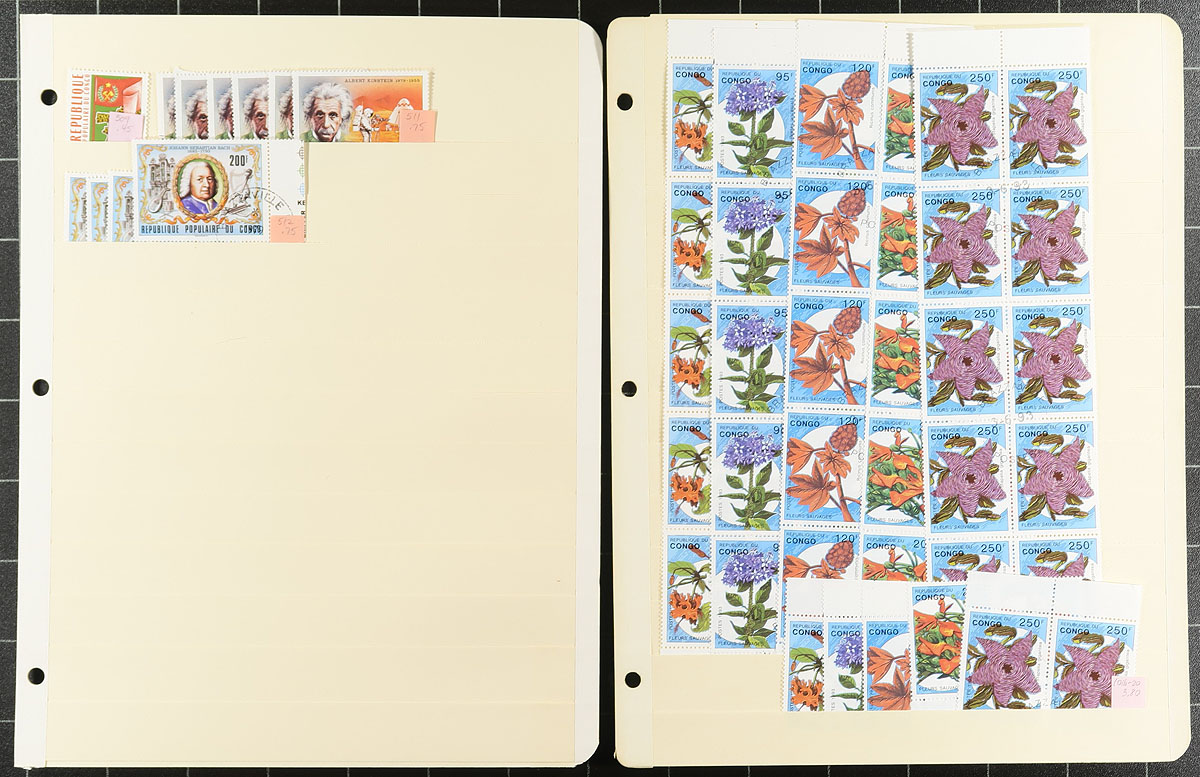 A stock representing the 20th century transition of this central African country from French colony to independence, up to the mid-1990's. With both mint and used on manila stockpages (up to 20 copies of a type) with current Scott numbers and older prices (easy to update). Substantial value here, such as a number of "Navigation and Commerce" issues (#24, #27, #29, #30, #31 - 4 mint copies each - almost $500.00 total catalogue value). The balance includes lots of topical issues and back of the book, with a bit of cancelled to order material. Overall condition is better than normally seen. Estimate =