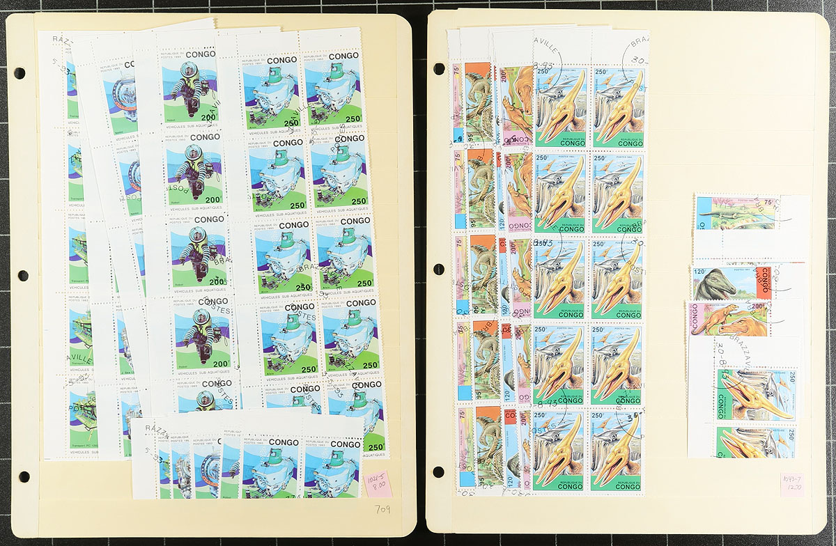 A stock representing the 20th century transition of this central African country from French colony to independence, up to the mid-1990's. With both mint and used on manila stockpages (up to 20 copies of a type) with current Scott numbers and older prices (easy to update). Substantial value here, such as a number of "Navigation and Commerce" issues (#24, #27, #29, #30, #31 - 4 mint copies each - almost $500.00 total catalogue value). The balance includes lots of topical issues and back of the book, with a bit of cancelled to order material. Overall condition is better than normally seen. Estimate =