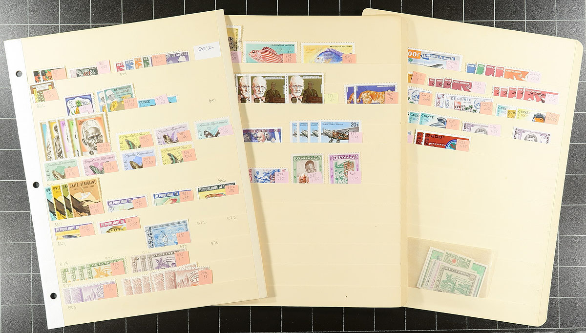 Part 2: "D" to "I" colonies. Collector’s neatly organized duplicates of several formerly French administered colonies in Africa. Mint and used, with up to a dozen of a type, with some nice cancels, back of the book with items identified by Scott number and (older) catalogue values. Some highlights include: a nice selection from Diego-Suarez from the "Navigation and Commerce" issue, a page of Djibouti, some Equatorial Africa (#121), French West Africa (lots of nice airmail and the O1-O12 set). Guinea includes some mint singles and there are a couple of pages of Inini overprints. Not often seen material, in very nice condition, with values that will add up quickly. 23 manila stockpages. Estimate =