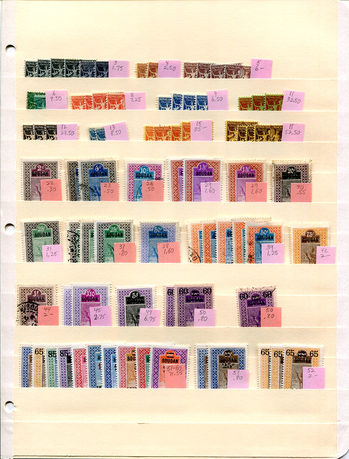 French Sudan # 3/119, B11/B15, C1/C12, J1/J14