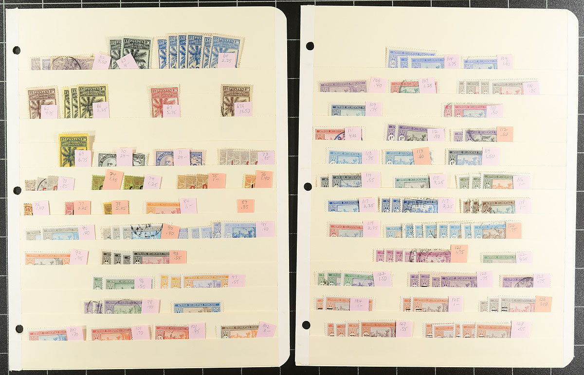 An uncommon collector’s holding of mint and used issues from the French colonial period up to the 1980's, including "back of the book". Well organized, with individual items listed by Scott number and duplication up to about 8 of a type. The best is the "Navigation and Commerce" issue including 3 mint copies of #46 and 4 each of #49-50, the black page alone catalogues US$1110.00. The balance includes sets and singles with catalogue values up to $35.00. Most are housed on manila stock pages. Don’t wait for the next one! Estimate =