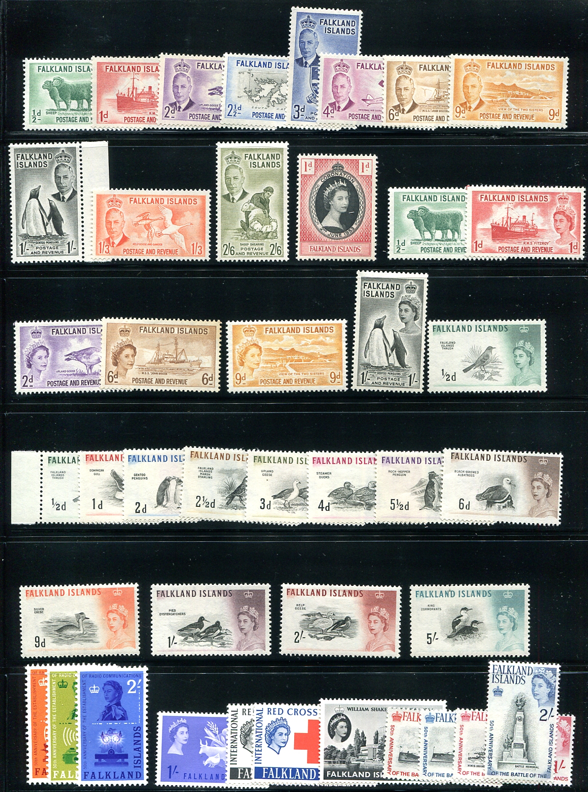 A two page "sampler" of mint issues from Queen Victoria to the 1960's, noting QV 2-1/2p #14 (heavy hinging), #79, much of the King George VI definitives and the QEII "Birds" issues, with some "Omnibus" issues scattered throughout. Most are lightly hinged. 2024 Scott US$902.60 =