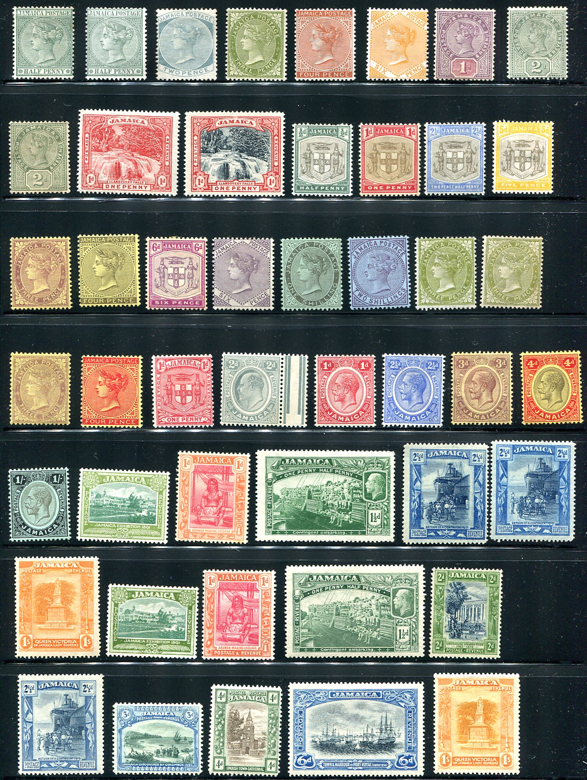A two-page sampler of mint Queen Victoria to King George VI, with a nice mix of regular issues, with shades and perforation variants throughout. Includes better such as #20a, #25a, #106, #108 and lots of other items cataloguing $10.00 - $15.00 each. Very clean, hinged (some are very lightly hinged) with no obvious visible faults. Great British Caribbean starter group. 2024 Scott US$797.55 =