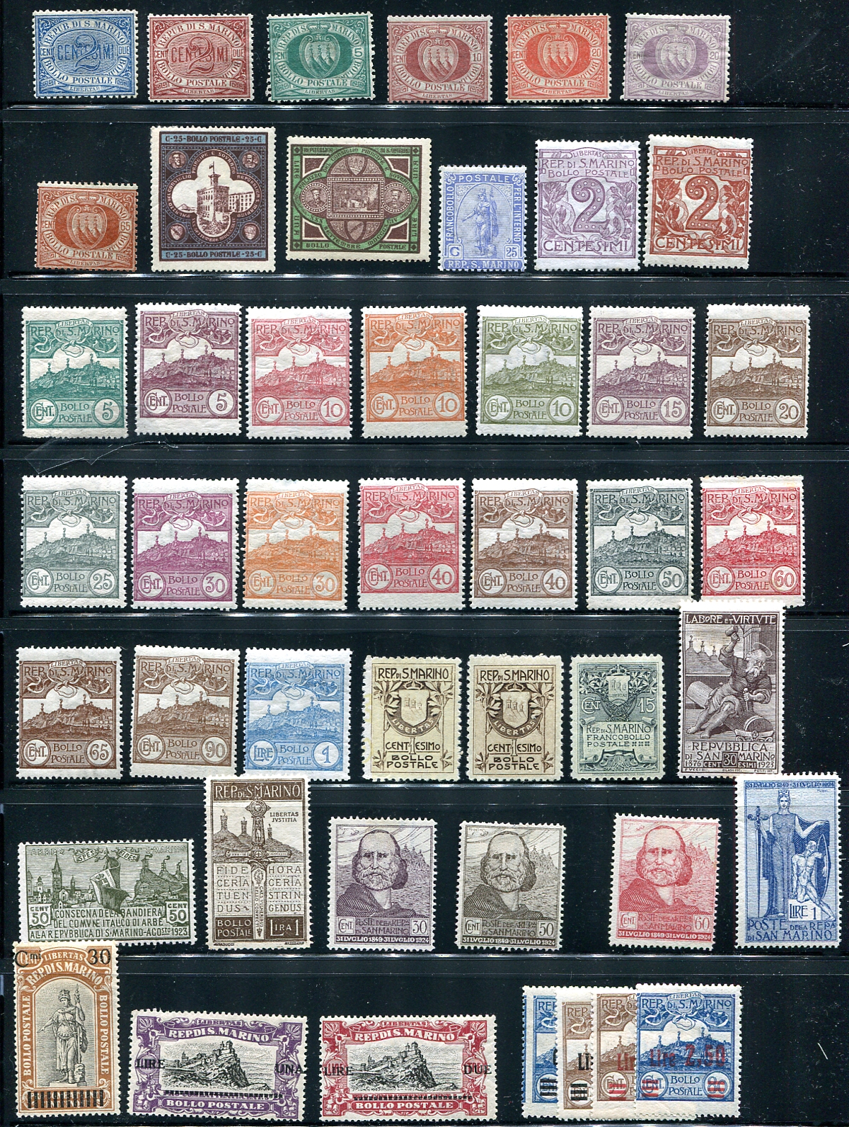 Attractive two-page selection of mint regular issue sets and singles pre-WWII. Better individual stamps include #11, #31, #79 and the St. Francis d’Assisi set #111-114. Some of the earlier are heavily hinged (as is usually the case) with hinging getting progressively lighter over time. 2024 Scott US$647.50 =