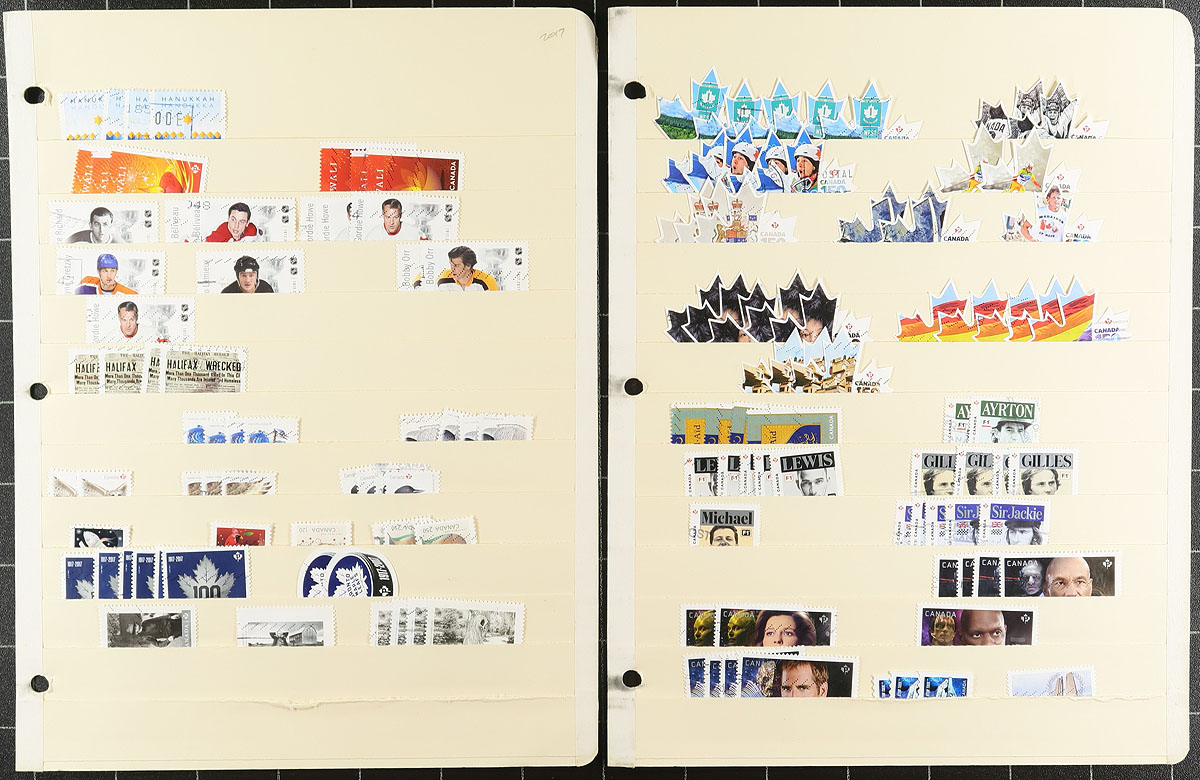 Modern used dealer stock of 51ยข values to "P" 2019 issues. A dealer's stockbook of some 2000 used average around 3 to 5 of each issue neatly laid out on manilla stock pages. At $1.00 average retail value for each stamp, gives this book a retail value of approximately $2000.00. All select examples, clean and fault-free, and no heavy duplication. Terrific buy at our estimate. Estimate =