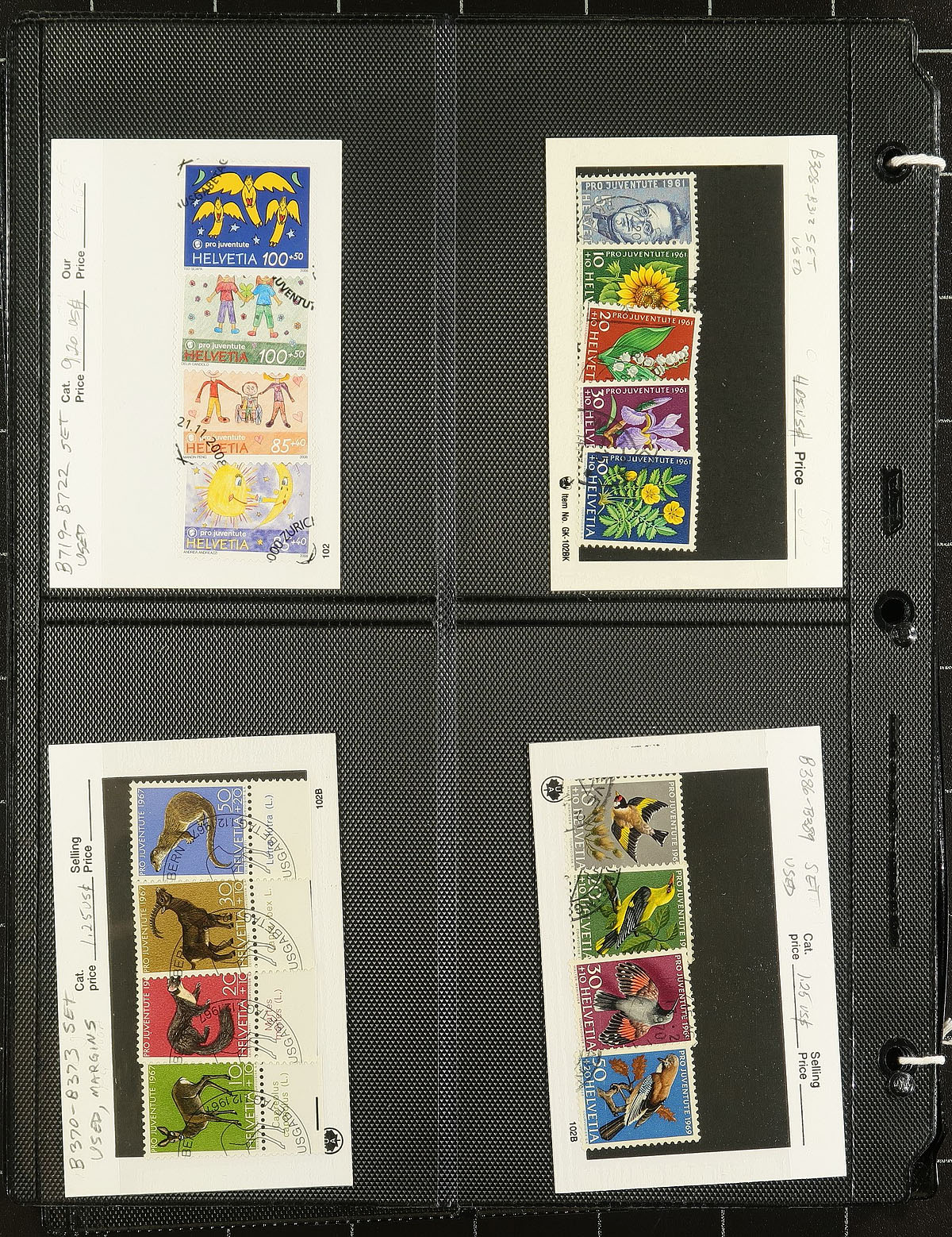 Selection of 56 different used semi-postal complete sets between #B1 to B722. Each set neatly placed on #102 cards with 2025 Scott value in US$ all ready for a dealer to price. Some goodies include B18-20, B25-28, B81-84, B196-200, etc. 2025 Scott US884.00 =