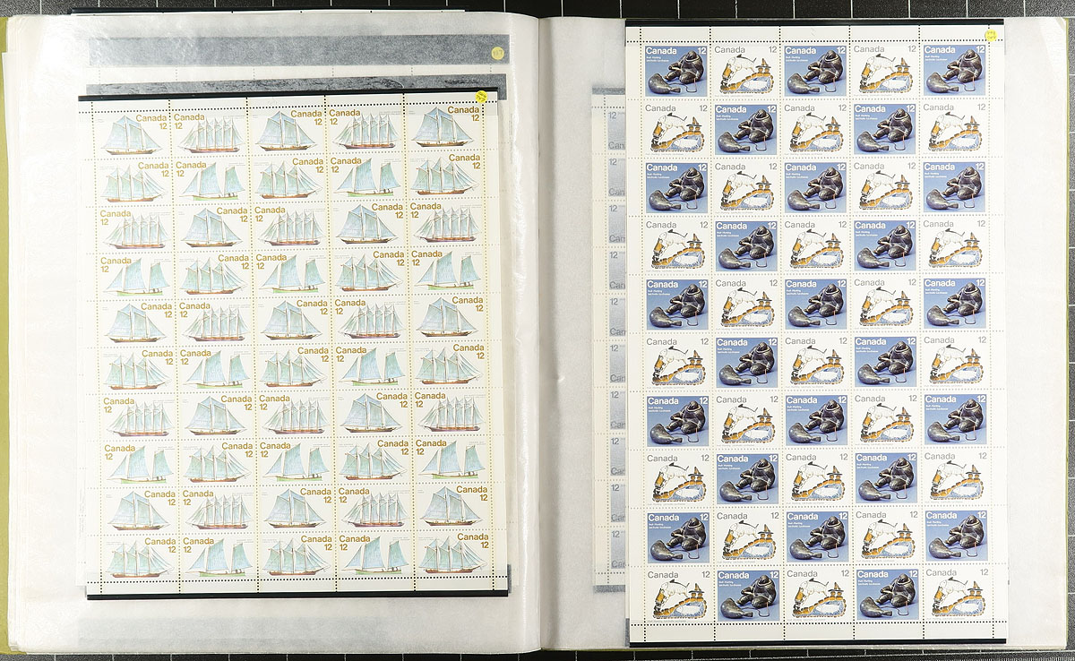 Pristine collection of 51 different mint Never Hinged complete sheets from the 1972-1979 period, all neatly arranged and identified by the owner in a sheet-file folder. Includes better such as the 1973 Royal Visit 15c, 1976 Olympics 20c / 25c values etc. Face value alone adds up to $327.25. Owner's 2024 Scott value US$1315.00 =