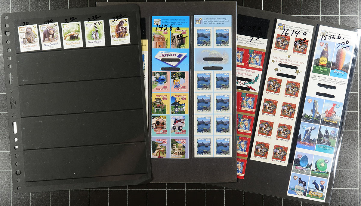 Attractive group of never hinged New Zealand souvenir sheets and booklets, 1974-1996, containing roughly 85 different souvenir sheets and 15 booklets (or panes), in many stock pages housed in a binder. Many of the items have been identified with Scott numbers along with older catalogue prices, noting several exhibition sheets, with several items cataloguing $5 to $10 and up each. Face value alone would be at least a couple hundred dollars. The lot also includes a few never hinged singles and souvenir sheets. Lovely lot with a wide variety of purposes. 2026 Scott US$608.00 =