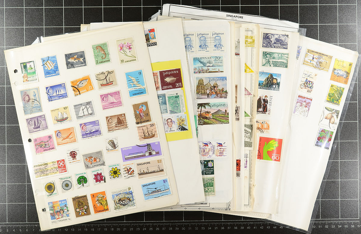 Consignment of a few thousand mint and used worldwide stamps in a variety of formats, including several 102 cards, stock pages, album pages, etc. We note singles, sets, souvenir sheets, part sheets, with better representation from Colombia, British Commonwealth countries, Italy, and more. Some of the material has been identified and priced generally ranging from $5 to $15 and up. A neat lot for the worldwide collector with possible finds to be had. Estimate =