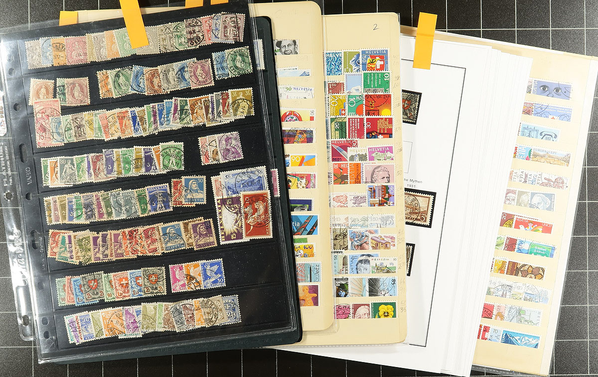 Collection of used Switzerland, 1962-2019, containing roughly 975 stamps in 21 album or stock pages. A spot check indicated single, sets, and partial sets, including semi-postals and airmails, with a good selection of early and modern issues, with strength from the 1900s to the 1960s. We note some material cataloguing in the $10 to $25 and up each, with owner's 2020 Scott catalogue value for the lot totaling US$1,065.00. Postmark interest includes cds and other town cancel types. A nice lot for Switzerland and worldwide collectors. Estimate =