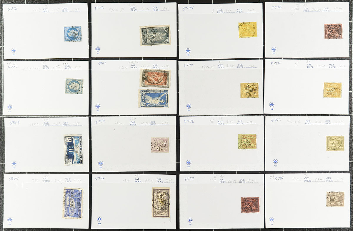 Handful of 46x "102" cards with primarily used France, with emphasis on the classic early issues. Each card is priced at a retail price (not catalogue value), with most cards priced in the $5-$20 range (some higher, some lower). Condition is mixed, but should easily be worth the estimate given. Estimate =