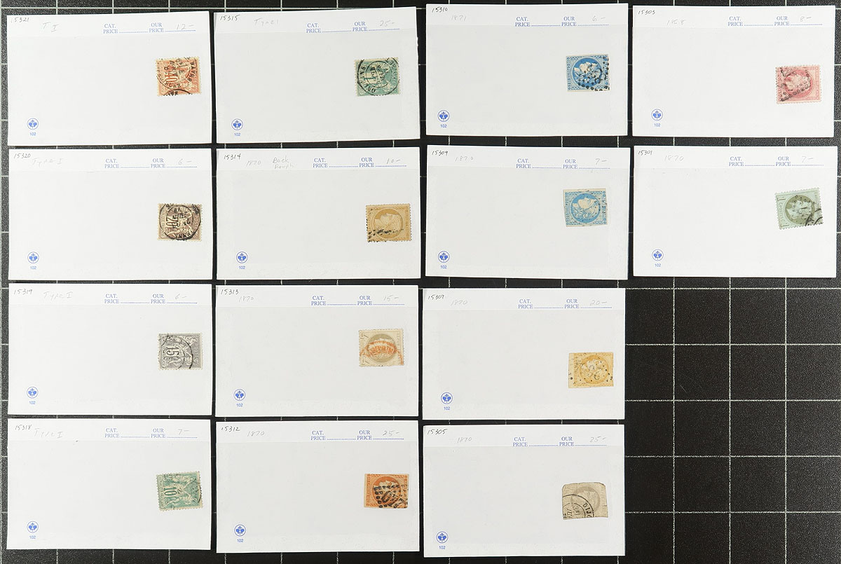 Handful of 46x "102" cards with primarily used France, with emphasis on the classic early issues. Each card is priced at a retail price (not catalogue value), with most cards priced in the $5-$20 range (some higher, some lower). Condition is mixed, but should easily be worth the estimate given. Estimate =