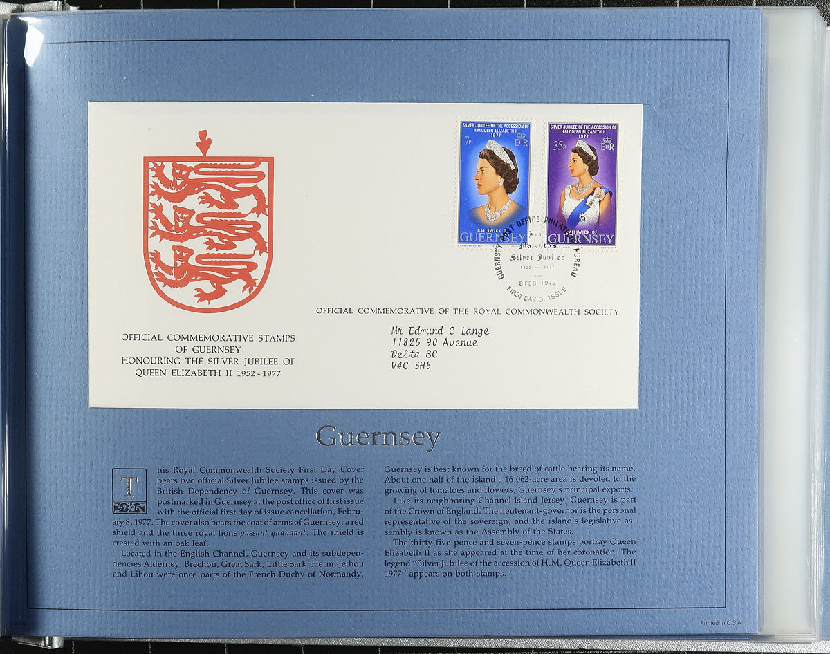 Carton full of thematic collections, mostly stamp sets and covers from Commonwealth countries including: two first day cover albums from the Australian First Day Cover Society (roughly 100 covers in total), Stanley Gibbons Royal Wedding Stamp Album, The Commonwealth Collection of Silver Jubilee First Day covers, New Zealand presentation packs, year sets, and more. A nice lot for the thematic and topical collector. Estimate =