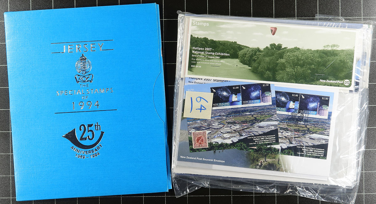 Carton full of thematic collections, mostly stamp sets and covers from Commonwealth countries including: two first day cover albums from the Australian First Day Cover Society (roughly 100 covers in total), Stanley Gibbons Royal Wedding Stamp Album, The Commonwealth Collection of Silver Jubilee First Day covers, New Zealand presentation packs, year sets, and more. A nice lot for the thematic and topical collector. Estimate =
