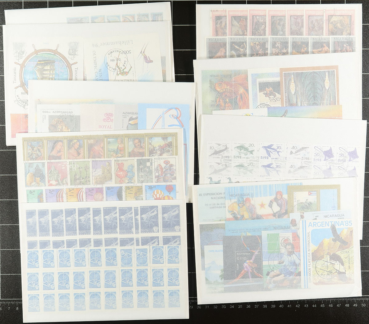 Worldwide lot of stamps and covers collected for topical subjects. The lot includes several hundred mint and used stamps, including many souvenir sheets / sheetlets, along with roughly 50 covers (mostly first days), in stock pages, stock cards, and a stockbook. We note several popular subjects including airplanes and flight, space, scouting, soccer/football, birds, butterflies, and much more. Some items have retail pricing attached in the $10 to $25 range each. A nice lot for the topical or thematic collector. Estimate =