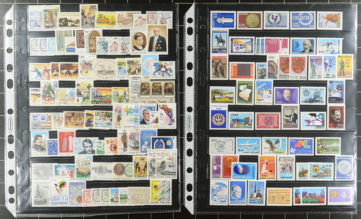 Collection of mint and used Finland, 1900-2011, containing just over 1,000 stamps in roughly 20 album or stock pages. The collection is an even mix of mint and used material, generally ranging from Scott #28/1370, with used material throughout and mint material concentrated from the 1970's to the 1990's. A spot check indicated some material cataloguing in the $5 to $10 range. Owner's 2019 Scott catalogue value for the lot totals US$1,021.00 ($1378.25 CDN). Some mild duplication possible, still a nice lot of this popular collecting country. Estimate =