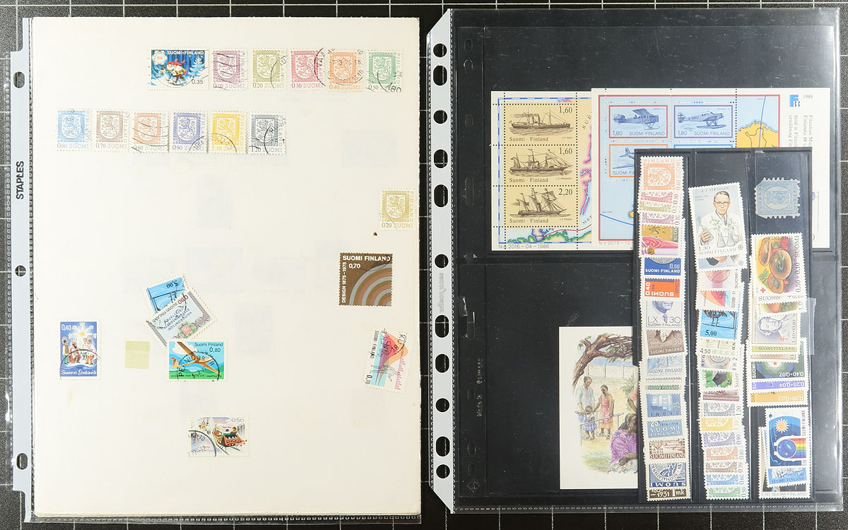Collection of mint and used Finland, 1900-2011, containing just over 1,000 stamps in roughly 20 album or stock pages. The collection is an even mix of mint and used material, generally ranging from Scott #28/1370, with used material throughout and mint material concentrated from the 1970's to the 1990's. A spot check indicated some material cataloguing in the $5 to $10 range. Owner's 2019 Scott catalogue value for the lot totals US$1,021.00 ($1378.25 CDN). Some mild duplication possible, still a nice lot of this popular collecting country. Estimate =