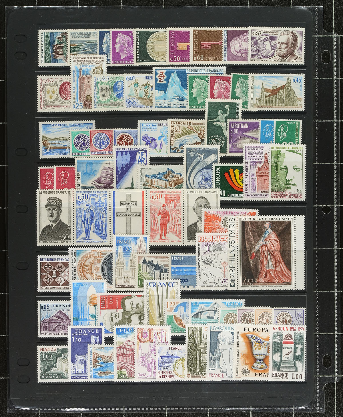 Collection of mint France, 1926-1993, containing roughly 700 stamps in roughly 15 album or stock pages. The collection generally ranges from Scott #229/2343, with the majority of material from the 1940s to the 1980s, along with a few semi-postals, including Scott #s 248 (mh, c.v. $60), 348 (nh, $150), along with a few stamps and sets ranging from $5 to $20 and up each. Owner's 2019 Scott catalogue for the collection totals US$1,251.00 ($1688.85 CDN). A spot check indicated a mixture of mint hinged and never hinged material. A nice lot of this popular area of philately. Estimate =