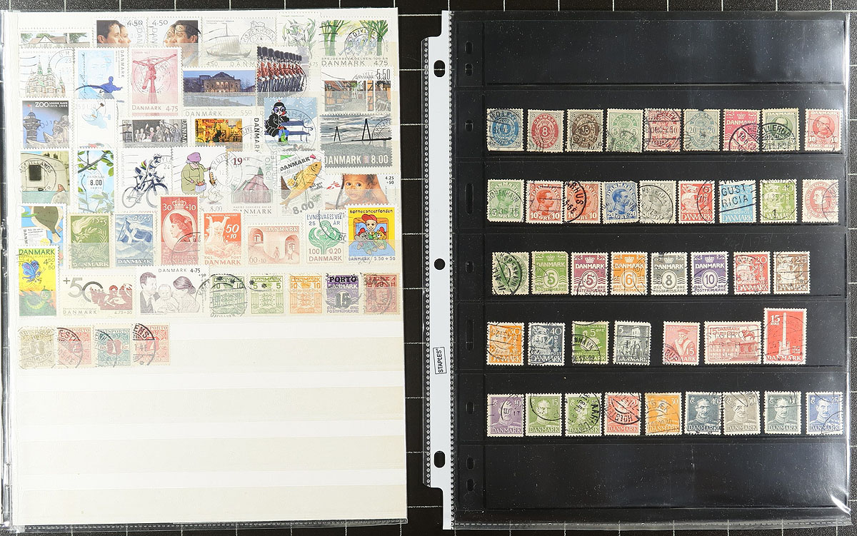 Accumulation of used Denmark, 1875-2016, containing roughly 1,500 stamps on 20 album or stock pages. The group is fairly well organized, generally ranging from Scott #26/1734, including some back of the book material. Owner's 2019 Scott catalogue value for the lot totals US$1,061.00 ($1432.35 CDN) leaving finds for the dedicated collector. Postmark interest include cds and other types, including several "socked on the nose" town cancels. Nice grouping for the postmark collector. Estimate =