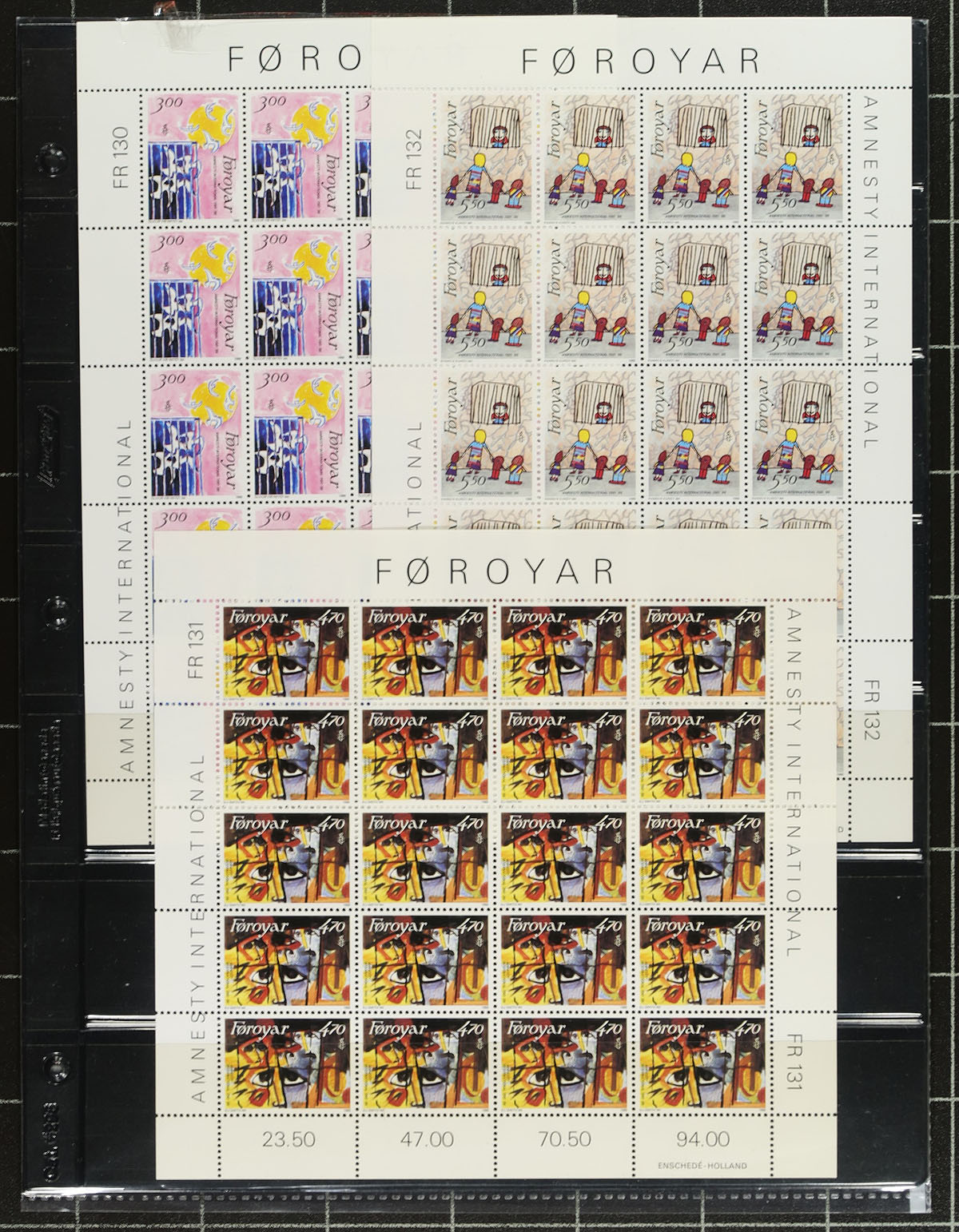 Lovely group of never hinged Faroe Islands souvenir sheets and sheetlets, 1978-1994, containing roughly 50 in total in 6 stock pages. The lot includes a few sets, primarily from the 1980s. Owner's 2020 Scott catalogue for the stamps totals US$723.00 ($976.05 CDN). A nice lot with topical possibilities as well. Estimate =
