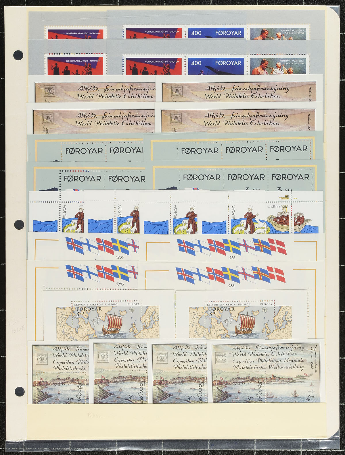 Lovely group of never hinged Faroe Islands souvenir sheets and sheetlets, 1978-1994, containing roughly 50 in total in 6 stock pages. The lot includes a few sets, primarily from the 1980s. Owner's 2020 Scott catalogue for the stamps totals US$723.00 ($976.05 CDN). A nice lot with topical possibilities as well. Estimate =