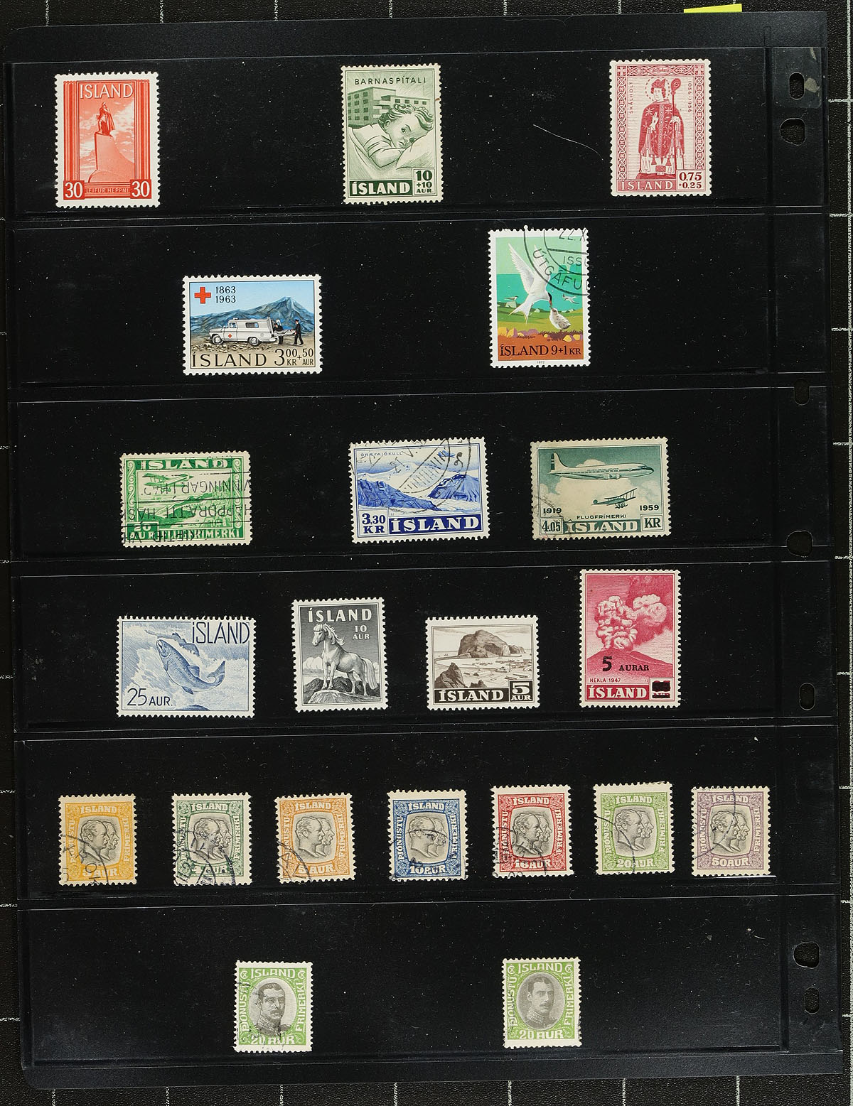 Collection / accumulation of primarily used Iceland, 1902-2007, containing well over 1,000 stamps on roughly 40 stock pages. We note a wide variety of stamps here with classic singles, along with some modern used, along with back of the book issues. A cursory check of the collection indicates some stamps, sets, and partial sets cataloguing in the $5 to $15 range and up. Postmark interest includes a few numerals and cds types, including a few smaller towns. A potentially high cataloguing lot, and a popular collecting area with possible finds for the specialist. Estimate =