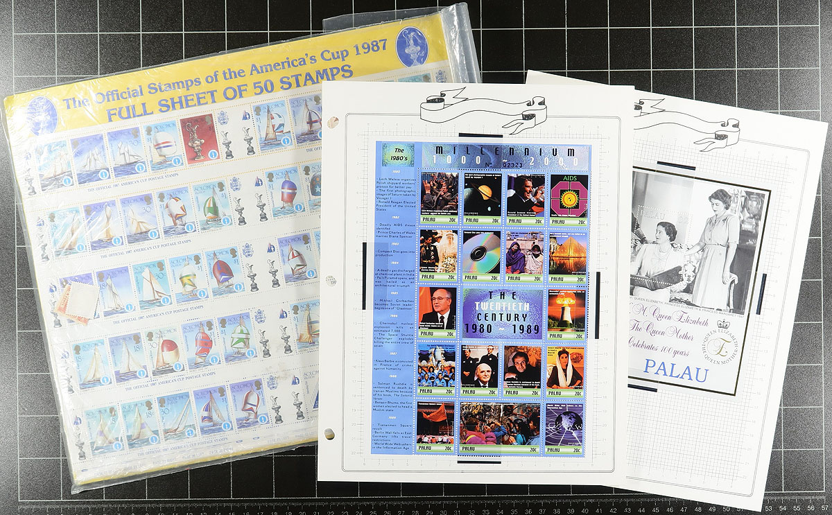Very nice group of roughly 270 worldwide souvenir sheets. The material generally ranges from the 1970's to the 1990's, primarily never hinged, with a few receiving CTO cancel, with the majority in stock pages. We note better representation from New Zealand, Niue, Portugal, and other British Commonwealth countries, and encountered several suitable topical and thematic subject including: Christmas, Europa, sports, birds, royalty and more. A clean lot for collectors and dealers alike. Estimate =