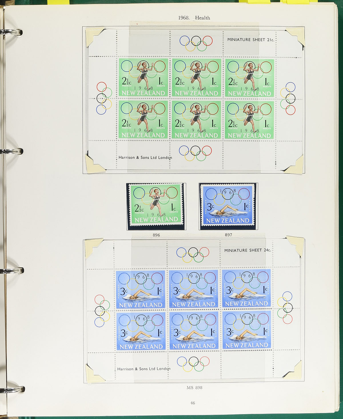 Lovely collection of primarily never hinged New Zealand in a Stanley Gibbons album, 1967-1987, containing roughly 650 stamp, neatly organized in hingeless mounts. The collection ranges from Scott #382/886, along with Health singles and sheets ranging from #B73/B129, along with a few back of the book issues. We estimate the collection to be 90% complete in period, along with a few identified watermark and perforation varieties. We noted some singles, sets, and souvenir sheets cataloguing $10 to $15 and up, with at least a few hundred dollars of face value postage alone. 2025 Scott US$741.00 =
