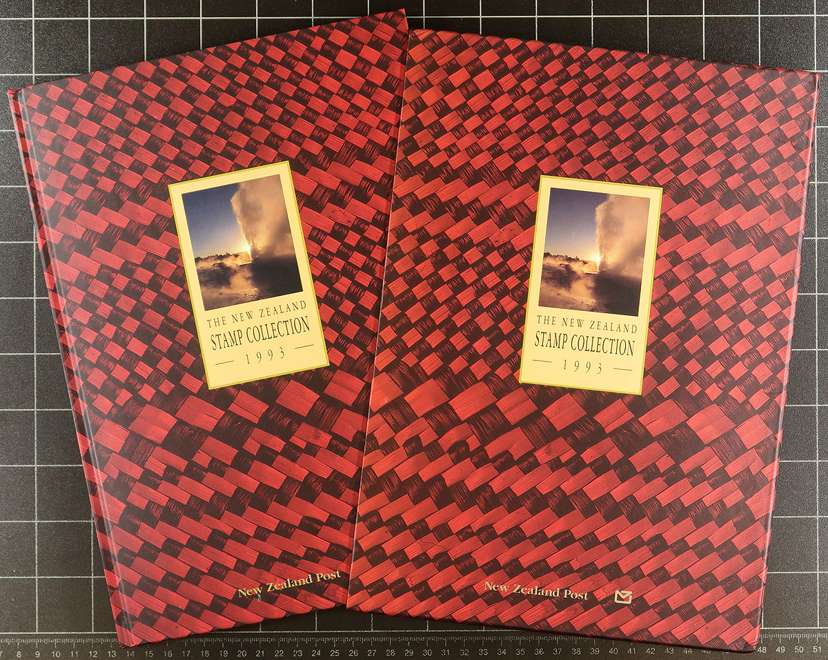 Group of 9 New Zealand Annual Collections, 1990-1998, containing never hinged singles, several sets, blocks, souvenir sheets and health stamps. All complete, with at least a few hundred dollars of face value postage. A lovely clean lot for all collectors. 2025 Scott US$752.00 =
