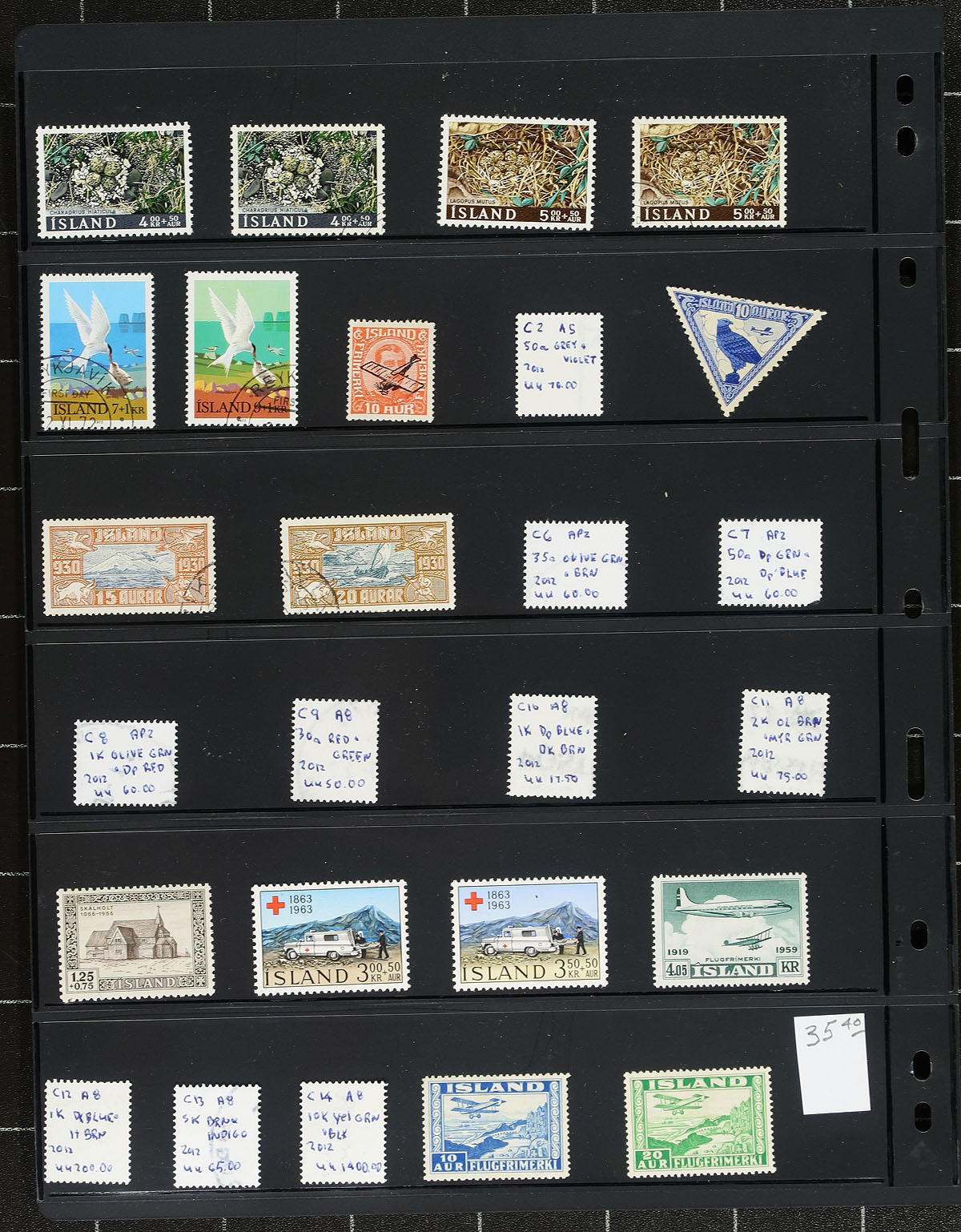 Lovely collection of mint and used Iceland, 1876-2017, containing roughly 1,250 stamps in several Vario stock pages. The collection several mint and used classic issues, along with selections of semi-postals, airmails, officials, souvenir sheets, and a decent selection of modern used issues. We noted several singles, sets, and partial sets cataloguing in the $10 to $35 range and up. Lots of "meat on the bone" here, leaving plenty of value for collectors or dealers looking for stock. Postmark interest includes numerals and bridge cancel types. Some mild duplication throughout with online photos showing a sampling only. A very attractive lot for all collectors and dealers. 2026 Scott US$4,305.00 =