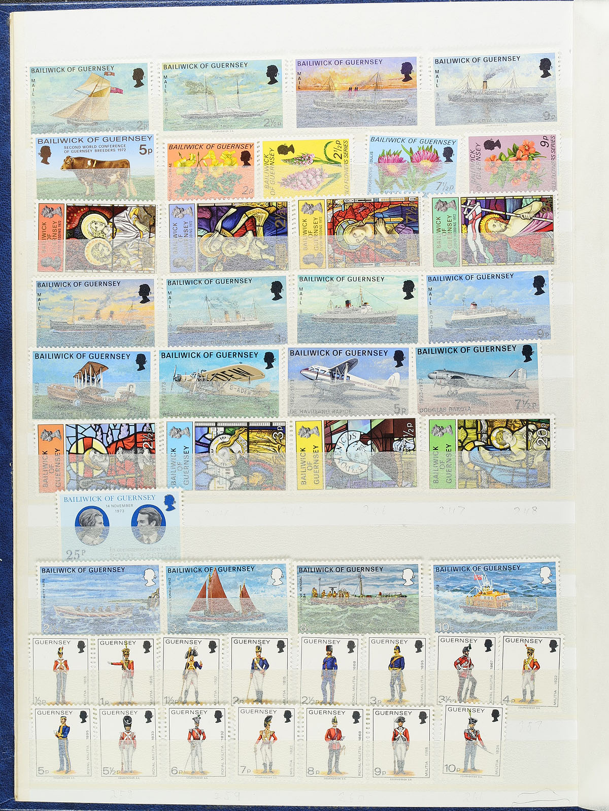 Clean collection of mint never hinged Channel Islands, 1969-1994, containing roughly 1,900 stamps in two stockbooks (one with broken spine noted for accuracy). This well organized collection contains Guernsey (Scott #1/535), Isle of Man (#12/622), Jersey (#26/680), along with souvenir sheets and postage dues, with several sets cataloguing in the $15 to $20 range and up. A nice lot for Commonwealth, topical and thematic collectors as we note several suitable subjects. Clean and very fine. 2026 Scott US$1204.00 =