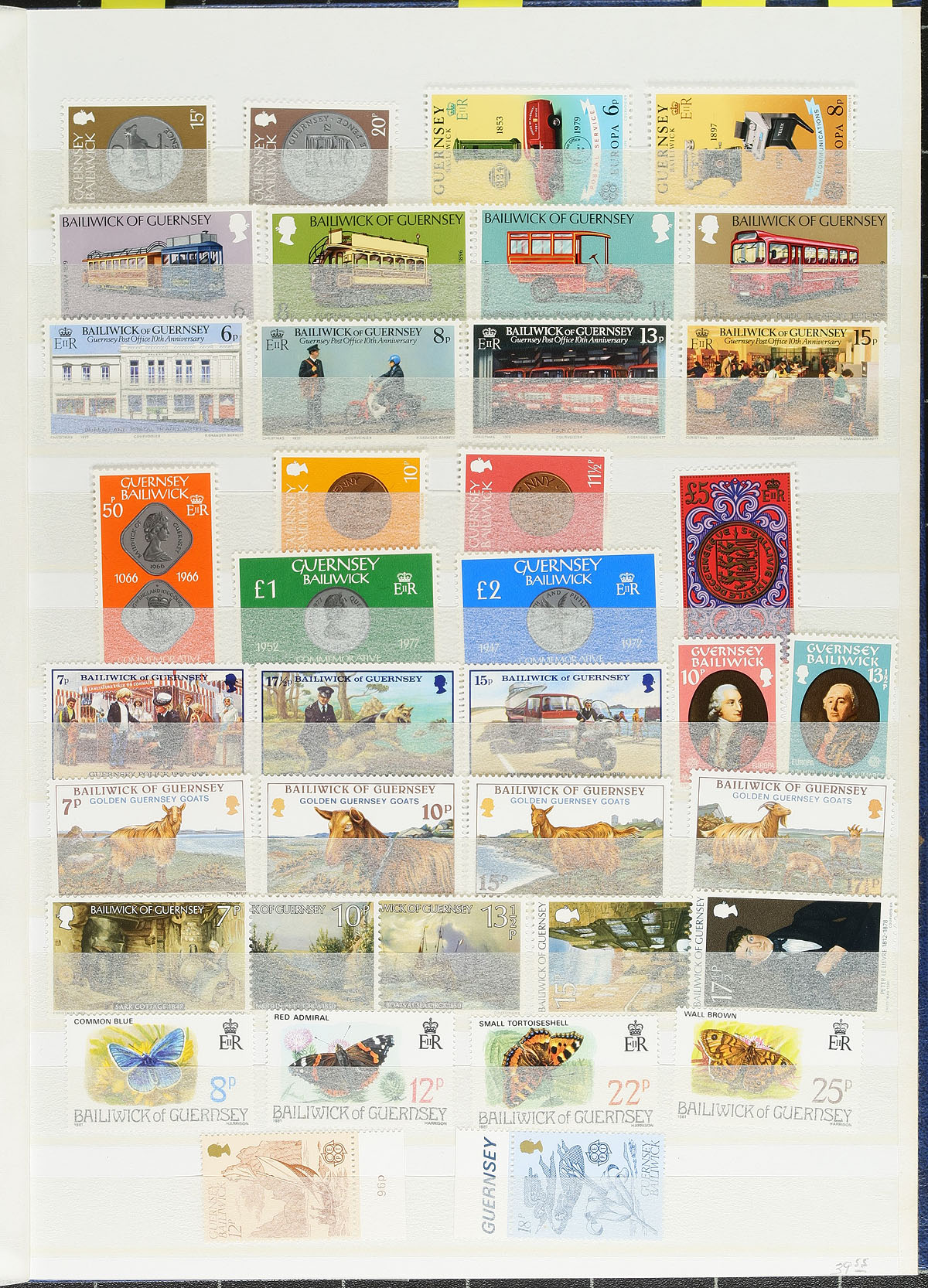Clean collection of mint never hinged Channel Islands, 1969-1994, containing roughly 1,900 stamps in two stockbooks (one with broken spine noted for accuracy). This well organized collection contains Guernsey (Scott #1/535), Isle of Man (#12/622), Jersey (#26/680), along with souvenir sheets and postage dues, with several sets cataloguing in the $15 to $20 range and up. A nice lot for Commonwealth, topical and thematic collectors as we note several suitable subjects. Clean and very fine. 2026 Scott US$1204.00 =