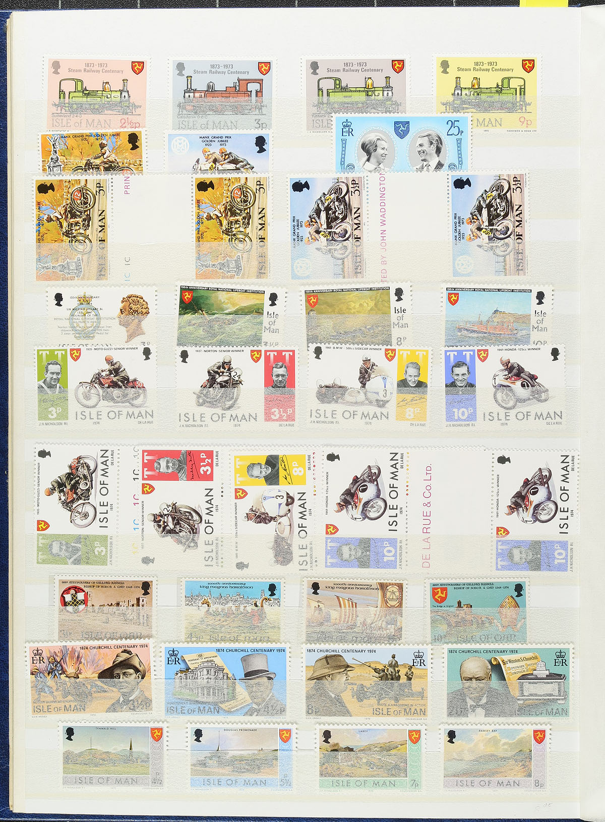 Clean collection of mint never hinged Channel Islands, 1969-1994, containing roughly 1,900 stamps in two stockbooks (one with broken spine noted for accuracy). This well organized collection contains Guernsey (Scott #1/535), Isle of Man (#12/622), Jersey (#26/680), along with souvenir sheets and postage dues, with several sets cataloguing in the $15 to $20 range and up. A nice lot for Commonwealth, topical and thematic collectors as we note several suitable subjects. Clean and very fine. 2026 Scott US$1204.00 =