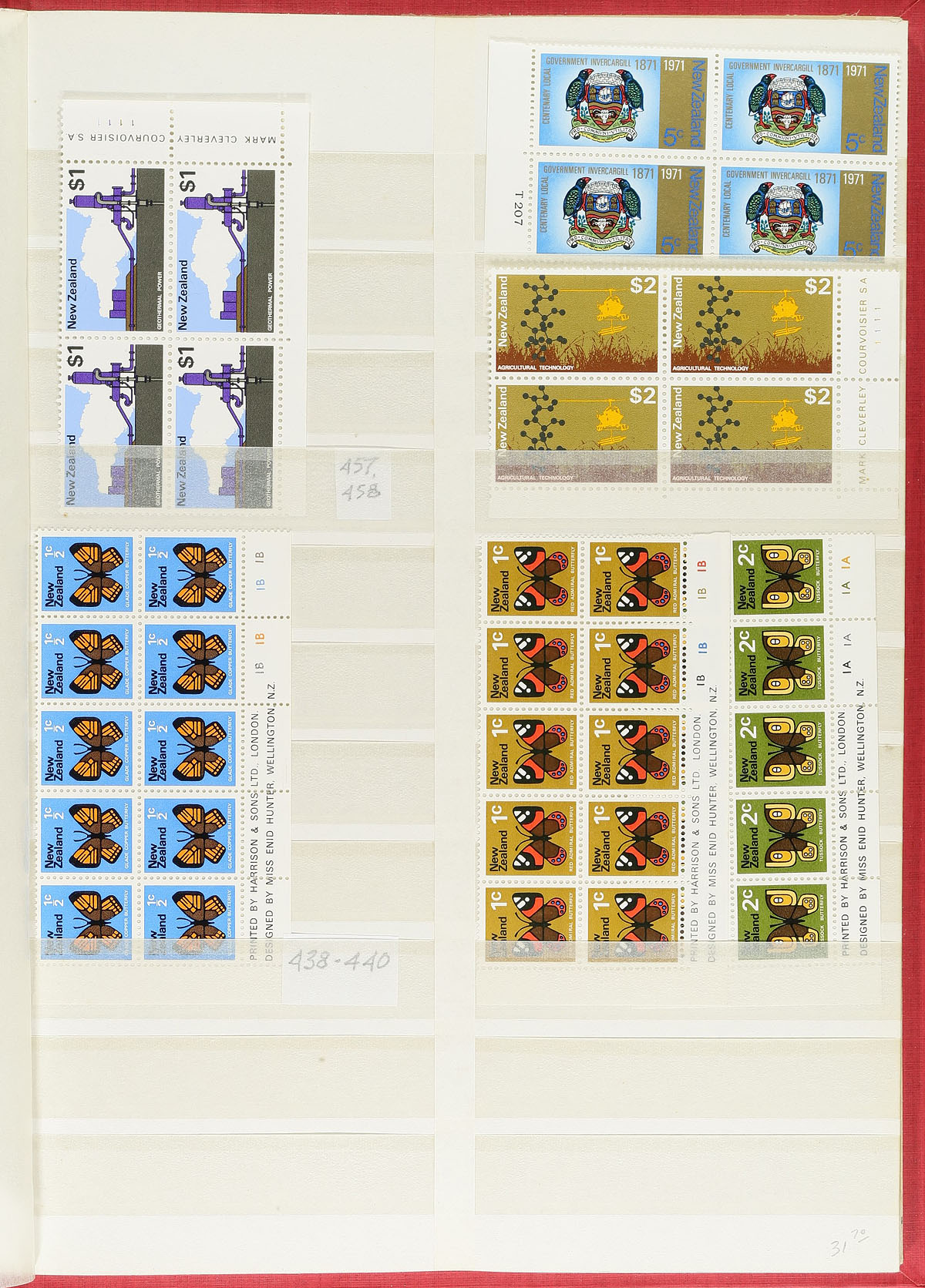 Mostly mint collection of New Zealand, 1882-1999, containing roughly 1,100 stamps housed in 2 stockbooks. This neatly organized collection ranges from Scott #61/1627, including semi-postals, officials, and other "back of the book" items, along with blocks, souvenir sheets and more. We note a few singles, sets, and partial sets cataloguing from $10 to $20 and up, including Scott #s 156, 158-159 (mh, c.v. $91 total). Face value alone would be a few hundred dollars, overall fine to very fine. 2025 Scott US$1,155.00 =