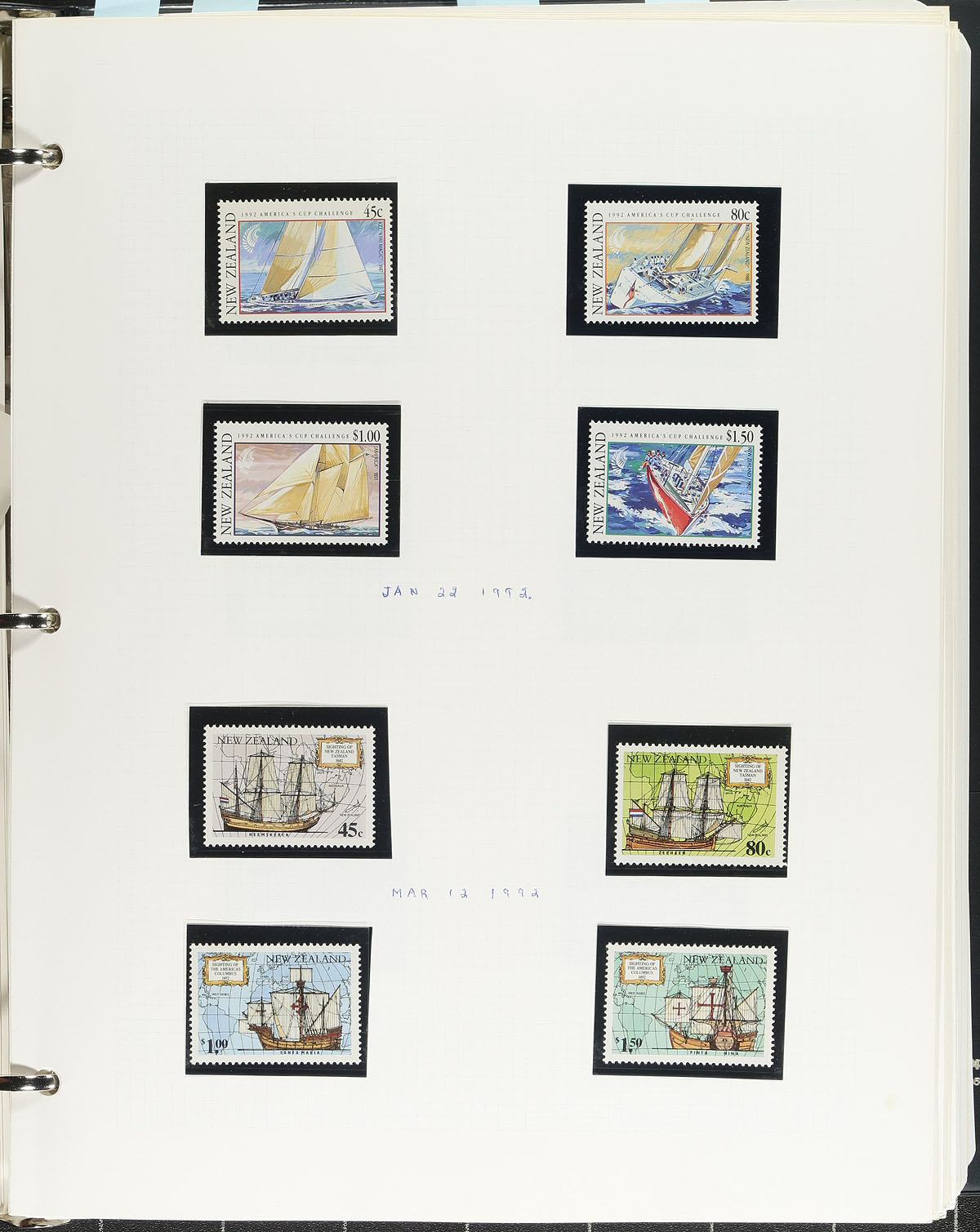 Nice collection of primarily mint New Zealand, 1967-2002, containing roughly 1,250 stamps in hingeless mounts on a few hundred homemade pages. This well organized collection ranges from Scott #405/1846, including souvenir sheets, semi-postals, and Ross Dependency issues. We note a few sets cataloguing $10 and up. Face value alone would be a few hundred dollars. A very nice lot for all collectors, overall fine to very fine. 2026 Scott US$1,268.00 =
